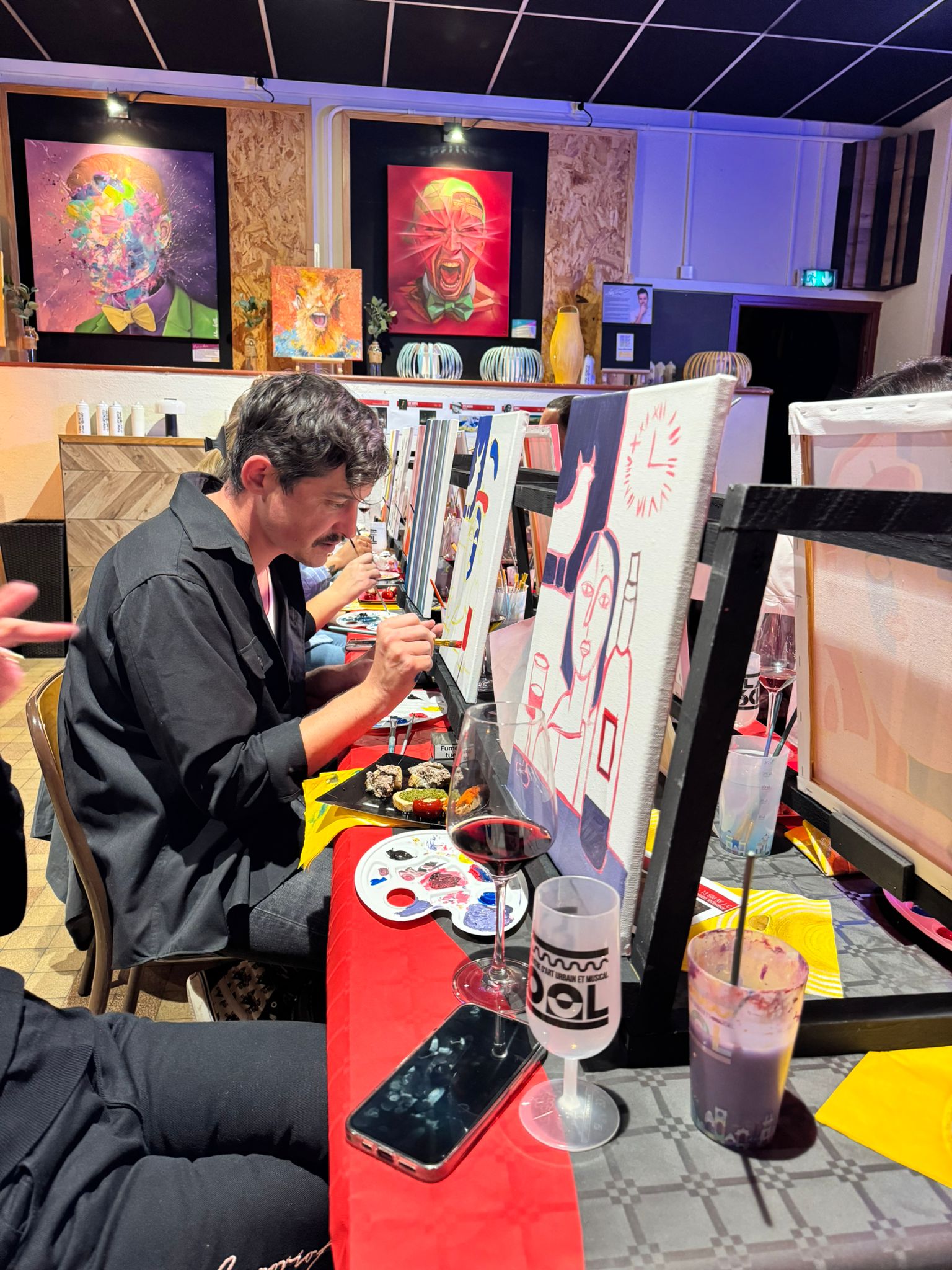 Que vous soyez artiste du dimanche ou curieux de vivre une nouvelle expérience, venez peindre, trinquer et vous laisser inspirer dans une ambiance conviviale et décontractée.